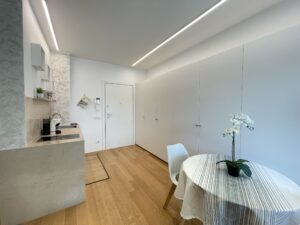 L’immobile è stato studiato da noto architetto per garantire massimo confort in un unico ambiente di 40 mq, con uso di materiali di pregio come pavimento in parquet/rovere.