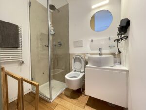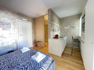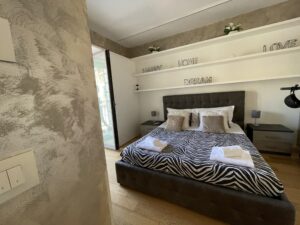 Come ulteriori rifiniture troviamo: Illuminazione con gioco di faretti e led, porta blindata, video citofono, antenna satellitare, cavi internet, gestione autonoma della funzione di raffrescamento e riscaldamento, grazie ad un termostato a parete e ad un comodo comando di un fan coil nascosto dietro apposita pannellatura. Unico nelle rifiniture!